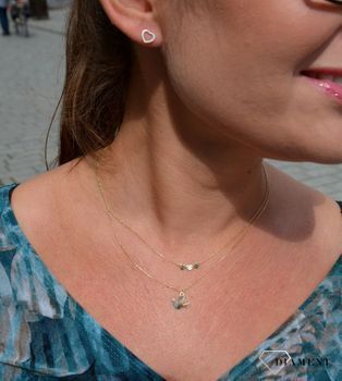 Złoty naszyjnik celebrytka 585 'Gołąbek pokoju'. Niezwykły blask szlachetnego kruszcu zamknięty w wyjątkowej formie detali w kształcie gołębia. Subtelny kontur elementów ozdobnych perfekcyjnie prezentuje się z klasycznym łańcuszkiem typu ankier, nadając każdej stylizacji swobodnej elegancji oraz niepowtarzalnego szyku. Złoty naszyjnik idealnie sprawdzi się w minimalistycznych zestawieniach na co dzień, ujmując jednocześnie starannym oraz estetycznym wykonaniem. Delikatna i zarazem ponadczasowa biżuteria pięknie komponuje się w zestawie z inną biżuterią tworząc modne sety. Długość naszyjnika wynosi 44 cm, z możliwością regulacji i skrócenia do długości 41 cm. Waga naszyjnika wynosi około 1,47 g.